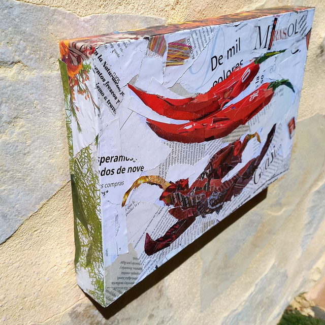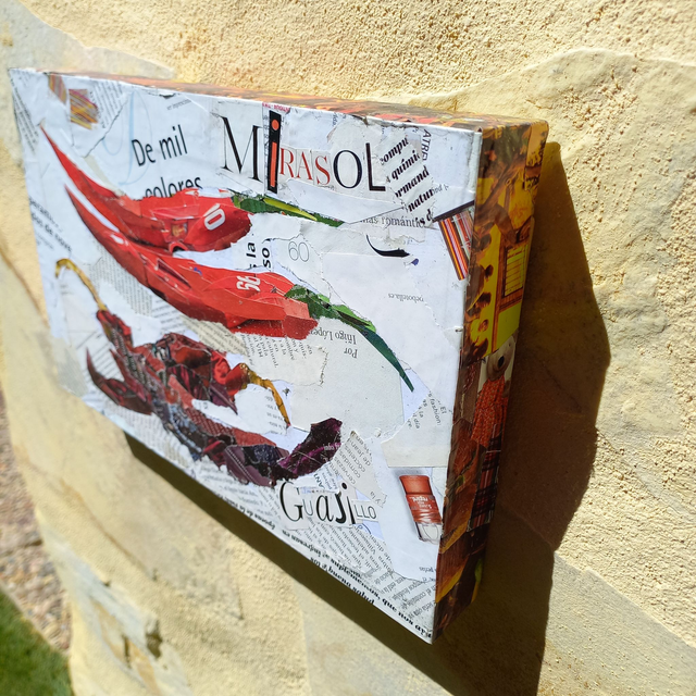 Obra original. Collage sobre madera (31x20x3,5cm). Bastidor ancho.