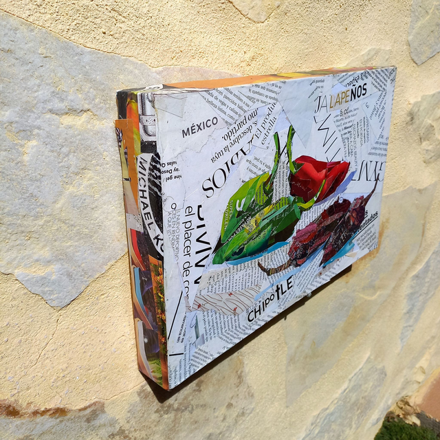 Obra original. Collage sobre madera (31x20x3,5cm). Bastidor ancho.