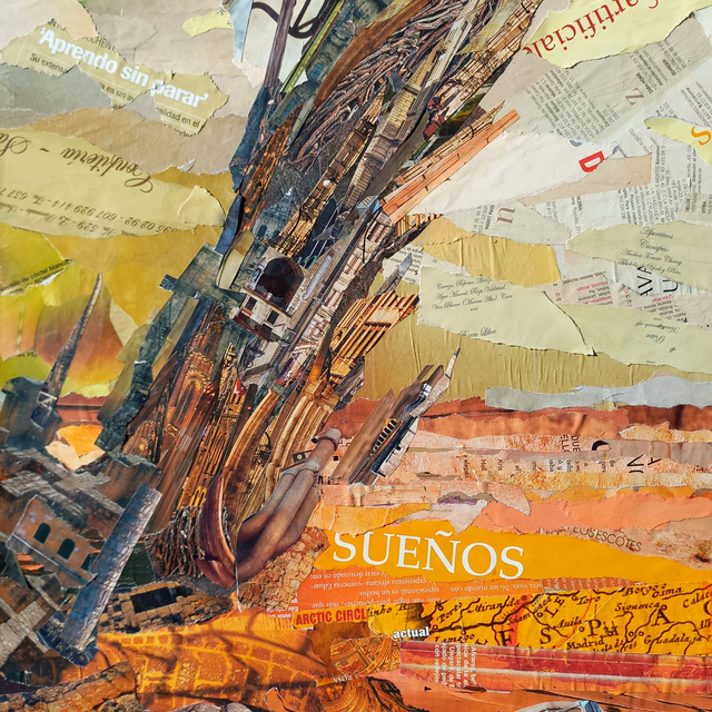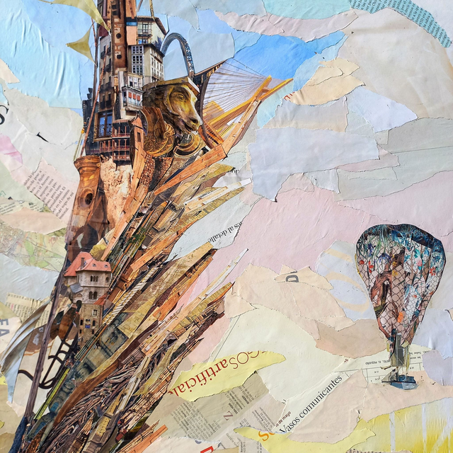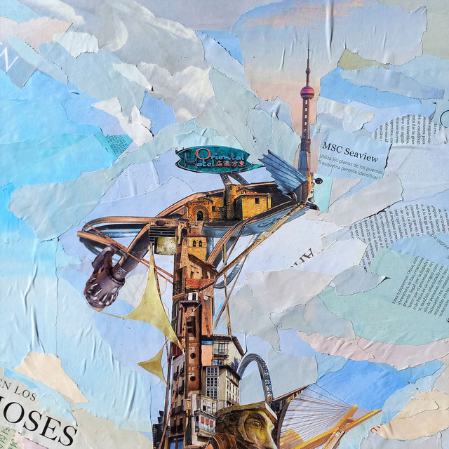 Obra original. Collage sobre madera (60x100x3,3cm). Bastidor ancho.