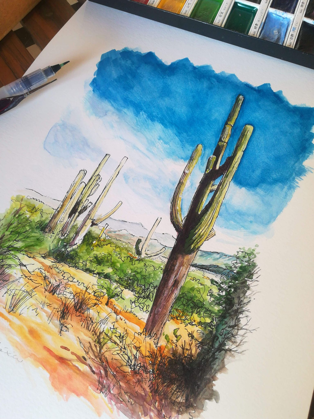 Acuarela, tinta y rotulador sobre papel 300gr. tamaño a3 (420x297 mm)